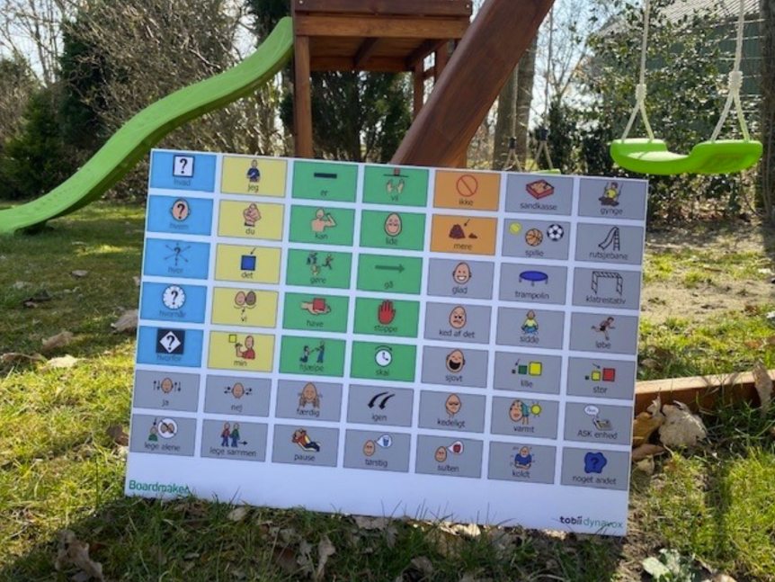 Printbare kommunikationsbøger og tavler med symbolbaseret ordforråd til støtte for ASK i hverdagen.