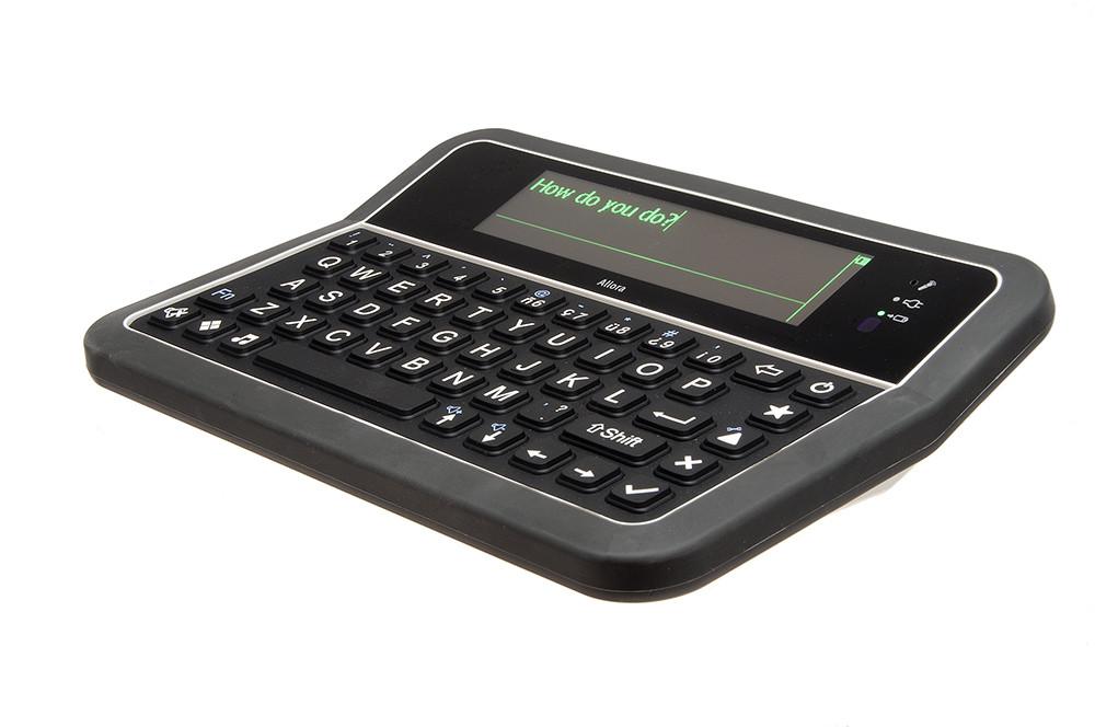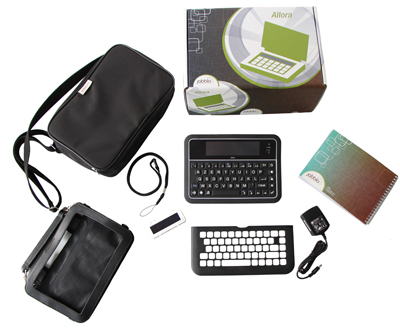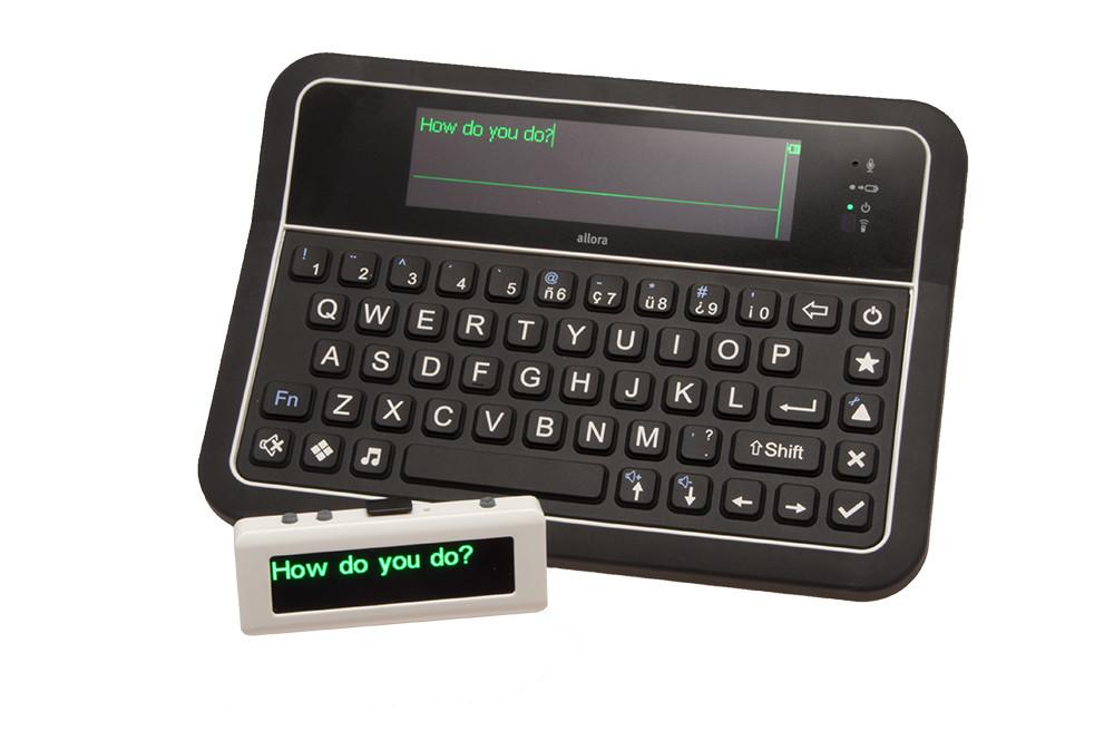 Allora II talemaskine med oplæsning Medfølger : Lædertaske med håndtag (Alloraen kan bruges mens den ligger i tasken) Tastaturskjold Lukket taske med skulderrem Dansk manual
